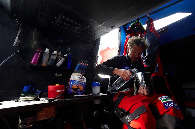 Jean-Pierre Dick preparing food on Virbac-Paprec ahead of the Vendée Globe © Arnaud Pilpré / Virbac-Paprec Sailing Team