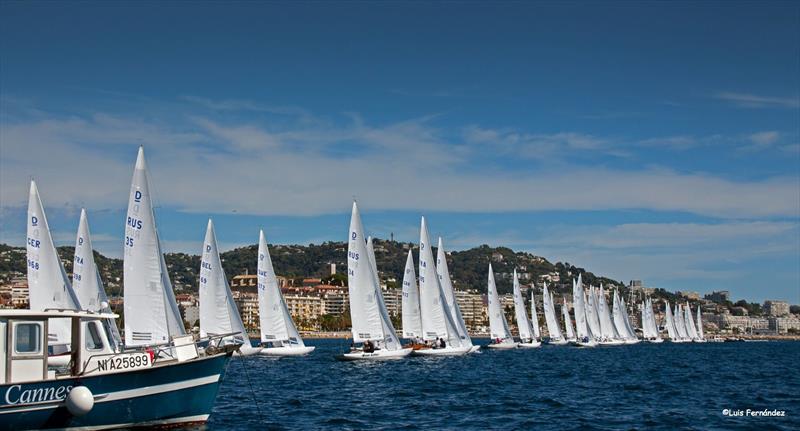 Exactly fifty Dragons were on the starting line for their first race at the 2016 Règates Royales, on a windward/leeward course in the bay of La Napoule, that, today looked like an alpine lake: flat water and a light southerly, not exceeding 8 knots. The Russian aficionados Anatoly Loginov, Vadim Startsenko and Alexander Shalagin on Annapurna took the first race, followed by compatriots Vasaliy Senetorov, Igor Ivasmintson and Slave Varnachkin on Even Better and Denmark's Blue Lady finishing in third.