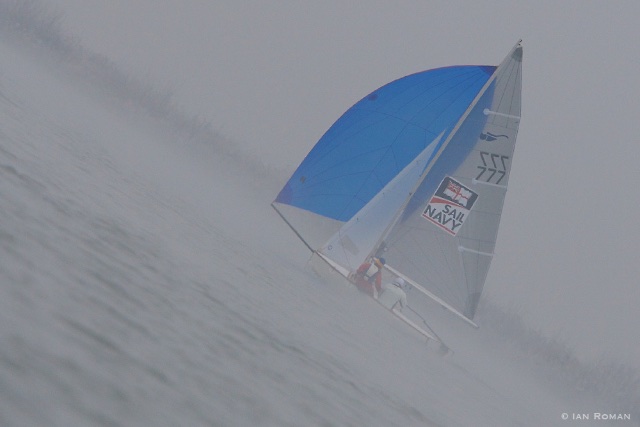 The 2nd place and subsequent retirement achieved the publicity aim! And that's a Bosun mast. You can tell because the spreaders are too low (level with the top of Navy). When the Small Ships Project Team agreed that Bosuns could have spreaders they sent Proctors the details of the rig. But they omitted to say that although the mast was stepped below deck it was not in anyway constrained at deck level. Which meant it still had too much sideways bend in any decent breeze. The measurement protest was about a gate which was being trialled as a retro-fit to correct that (thousands of Bosun (yes really....)) having had their spreaders added). The irony was that it wasn't much windier than the picture above at that Nationals and the mast never touched the gate over the whole weekend (we kept an eye on it).