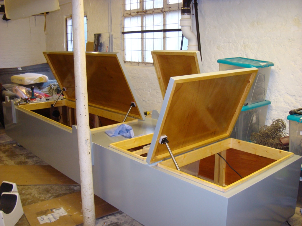 I built a ply one for my Dart trailer. Frame built up first out of baton, then clad with ply boarding. I decided to put the access to the box on the rear, so I could access from just under the rear beam without having to take the boat off. At the time I was windsurfing and keeping kit in there.