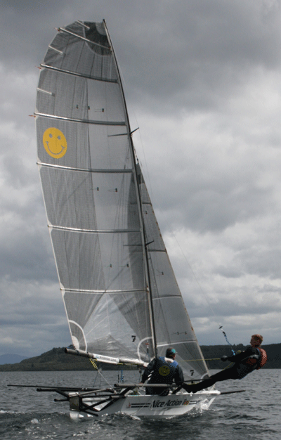 ...look insane! After I get half decent at sailing in cherubs, I'm throwing an inhumanely big rig on and having a play. They just look f**king mental! I think if sailing in general gets enough exposure to the British public through the 2012 Olympics etc, then the media will look at our sport (particularly the 12ft/18ft skiffs) like Formula 1. Give it a few years and it will be on mainstream TV, just like Formula 1.