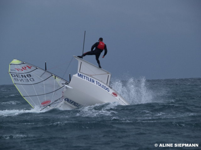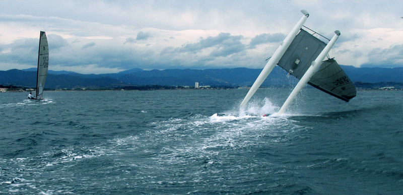 youy can just see the guy in the water, proberly dead. RIP cat man! and here a 49er sailor heading that way |
