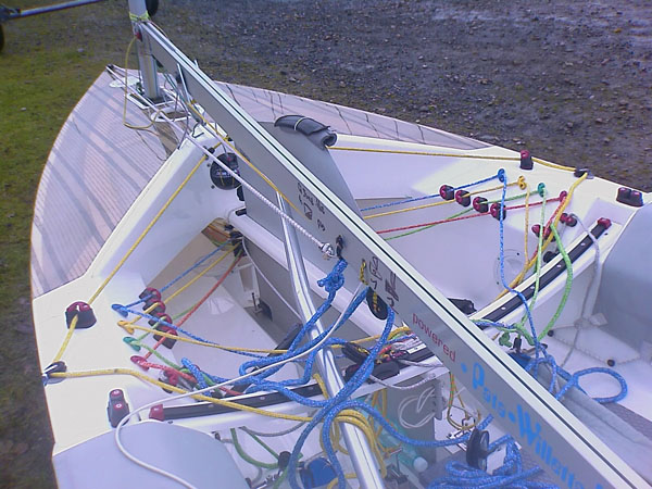*That's* not a wide traveller... *This* is a wide traveller... ![]() (apologies for the photo credit YY) Personally I'm no fan of the push kicker* because it messes up one of the more effective bits of sail, puts bend in the mast where I really don't want it, and needs extra long lowers (=more drag) to try and stop it doing so. As someone who's always sailed forward hand I don't really buy the space thing. *I refuse to use the vile V "word" Edited by JimC |
