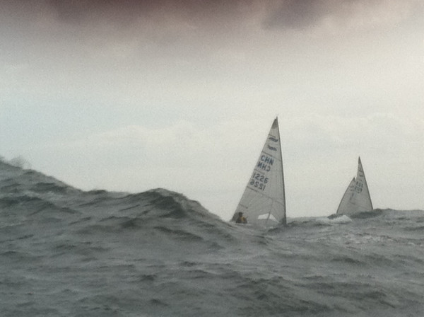 I was getting very excited on the first leg of the second race watching my mate John Mackie pulling out a big lead on the rest of the fleet going higher and faster ................. then it twigged that he may have been in a rib