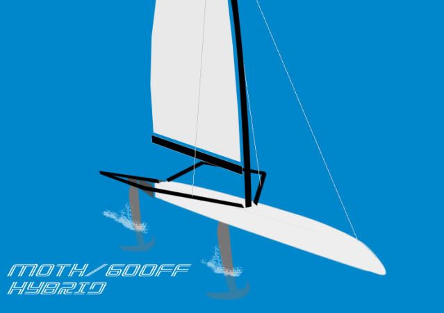 Now, the moth is designed just for foiling, whereas the 600 is not. So why has no one made a Moth but in 600 scale instead of sticking some foils on something not designed for it? What I mean is using the rig and racks from a 600FF but with a hull that is to a similar design of the latest moths. Surely this would increase the speed of the thing, and allow it to foil a lot earlier due to the powerful rig and low weight.
