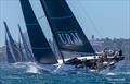 Charge! LawConnect leads the maxis and the remainder of the fleet out of the Heads after the start of the 2025 Rolex Sydney Hobart Yacht Race