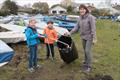 Victoria Lovell with Isaac Lovell and and Jack Addison cleaning the Emsworth SC boat park