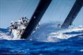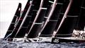 The first of two 8n/Mlle windward leeward races was in progress when the breeze broke left after Grant Wharington’s Wild Thing sailed the marginal shifts on the left to head the New Zealand Maxi Shockwave which converged from the right at the windward mark.