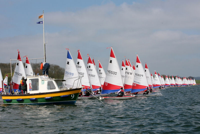 A record entry for the first event in the Topper National Series, organised by ITCA and sponsored by Craftinsure, saw 200 Topper dinghies converge on Rutland SC on the weekend of 18th/19th April from all over the UK. The organisation that takes place to get 200 boats into the dinghy park then onto the foreshore in one morning has to be slick and that is the only way to describe the superb organisation that Rutland SC provided with marshalling of cars from the drop off point, swiftly onto the carpark which made space for more boats to rig.