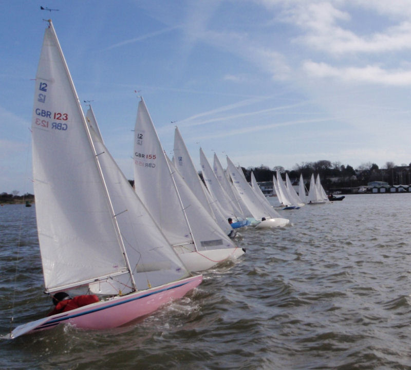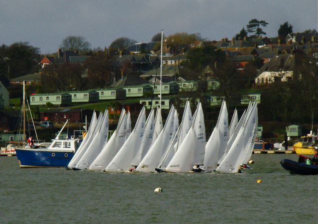 With a horrendous weather forecast of severe winter storms, snow and rain for the weekend of the Illusion National Championship 26 sailors still braved the elements and made it to the start-line. Luckily the ‘tropical’ Isle of Wight missed most of the weather although it did rain about 1” creating exceptionally high water in Bembridge Harbour. Between the clouds however occasionally rays of sunshine could be seen which was nice considering water temperature is around 3C and air around 5c. Saturdays racing got off at 0900, a struggle for a few. The wind was from the South West, force 3-5 backing later to the South. Race office Mike Samuelson had set a very long line and course to avoid big pile ups at the start and top mark. However it was still crowded and plenty of pushing on the line which was to be expected which such a line up of top Solent sailors.