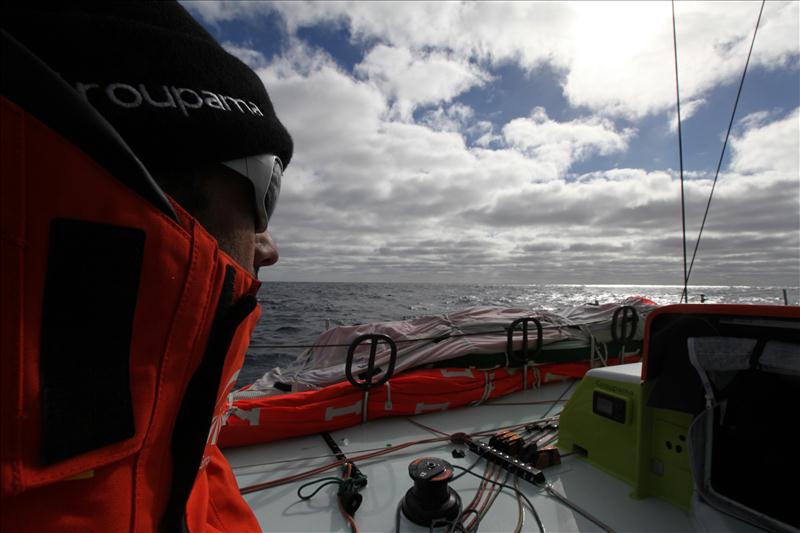 “We’re still a long way from the matter in hand and once we have 40-45 knots of breeze, the sea state will be all important. We will then have two reefs in the mainsail and the storm jib,” skipper Franck Cammas said. He added that the whole crew is tense, wondering how the boat will cope in the very strong conditions expected between today and Saturday.