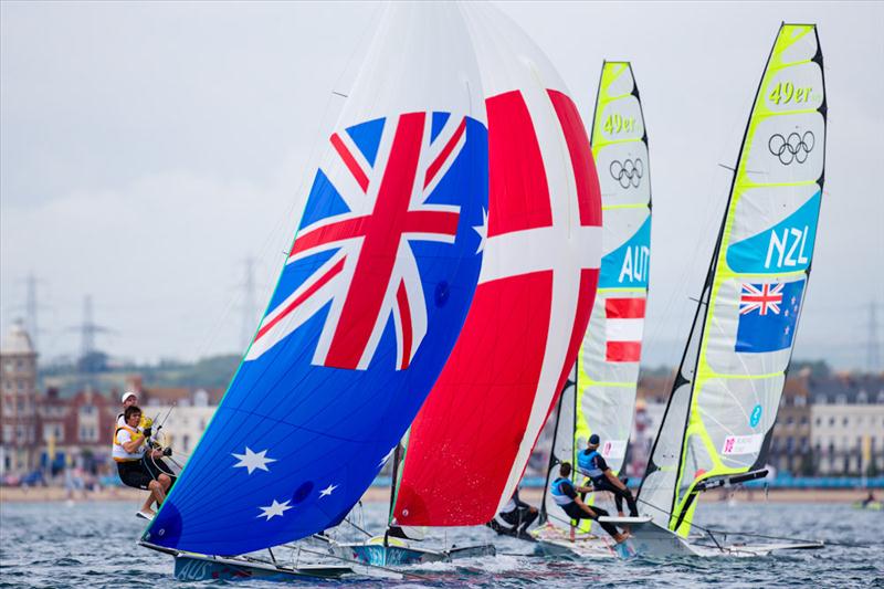 Having already sealed 49er gold ahead of the final day Nathan Outteridge and Iain Jensen (AUS) sailed conservatively allowing a light wind battle for bronze to ensue on the Nothe Course.