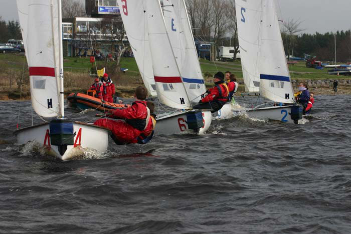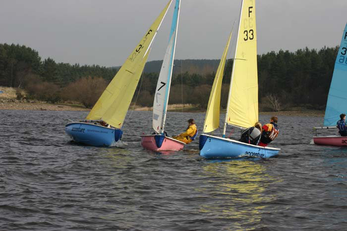 The British Universities Team Racing Championships came North for the first time for many years, with the event hosted by Newcastle University at Derwent Reservoir. The three day Championship from March 30 to April 1st was sailed in flights of Fireflies, and attracted twenty four mixed teams, plus ten Ladies teams.
