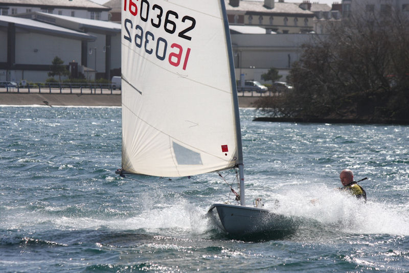 In 22 knots of wind the first race got under way with Darren Nield's Laser (Elton SC) vsteaming off into the lead followed by Tony Critchley's Supernova (Bolton SC). Floundering a little behind in his first ever go in a Supernova was Paul Harris (great day to try out a new boat!) and Tony Dent in a Phantom (both Southport SC). Darren disappeared behind the island and failed to re appear until well after Tony's Supernova. From then on it was a two horse race and just as it looked as if Darren would have it in the bag he dismounted his steed within sight of the finish. He staged a quick recovery but was still beaten by 5 seconds on handicap. The second Supernova and Phantom failed to finish.
