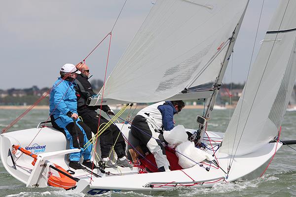 The SB20 fleet may be last in our report, but they are by no means least with the largest entry of all the classes at sixteen boats. Race one went to Scott Graham's Chill Pill + but they couldn't maintain their supremacy and it was the Llewellyn/Wakefield/Virgus partnership aboard Henri-Lloyd/Forelle Estates that charged through to win races two and three and take the overall lead by a single point from Chill Pill +. Craig Burlton's Gill Race Team put in a steady opening day and their 2, 3, 6 scoreline gives them eleven points and third overall, four behind Chill Pill +. The top five is completed by Tom Foskett's What Recession? on thirteen points and Jerry Hill's Sportsboatworld.com on 14.