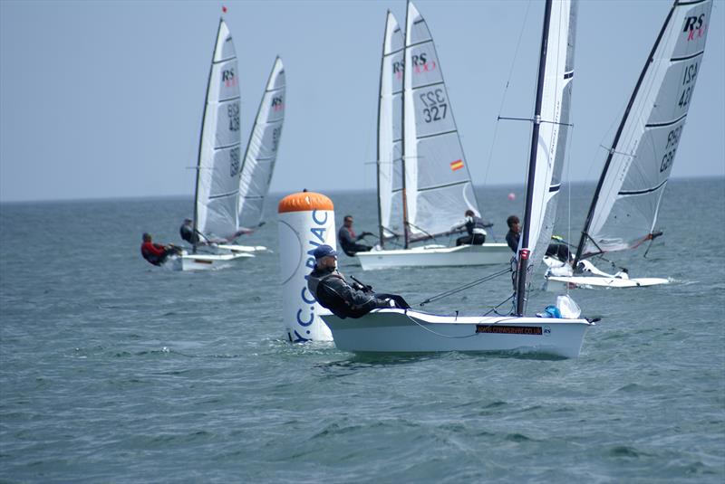 A blustery north westerly with sunshine, around 18-20 knots, greeted the 15 RS100 sailors from as far afield as North Wales, Switzerland, Spain, Italy, Isle of Wight and of course not forgetting England!