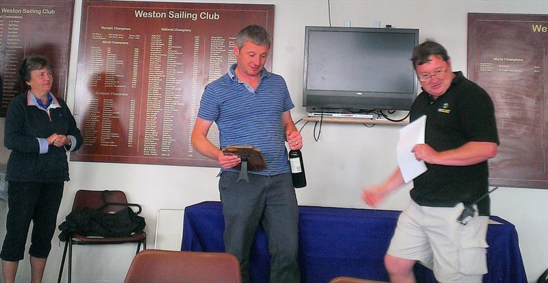 Twenty-one Contenders arrived at Weston SC for the annual open meeting with a light NE forecast for Saturday and a little more for Sunday. The fleet was boosted by the arrival of new faces and the welcome return of Nick Noble after a few years messing about on bikes. New to the open meeting circuit were Peter & Simon from Neyland YC in South Wales and Keith who came all the way from Guernsey!