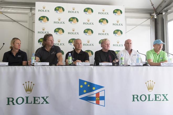 Rolex Sydney to Hobart International Press Conference (from left): Gina Hewson - Titania of Cowes, Mariusz Koper – Katharsis II, Manouch Moshayedi – RIO 100, Jim Clark – Comanche, Max Klink - Caro, Matthew Fortune – Passion 4 C © Andrea Francolini / CYCA