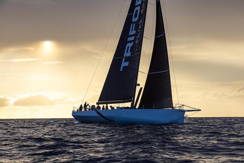 At sunset on the tenth day of the RORC Transatlantic Race, the modified Volvo 70 L4 Trifork (DEN) finished the RORC Transatlantic Race in an elapsed time of 9 days 10 hrs 27 mins and 58 secs. L4 Trifork is the second monohull to finish the race and the first of three 70-foot hi-tech ocean racers. L4 Trifork's IRC corrected time is not enough to beat the 100ft Maxi Comanche (CAY) for the overall lead.