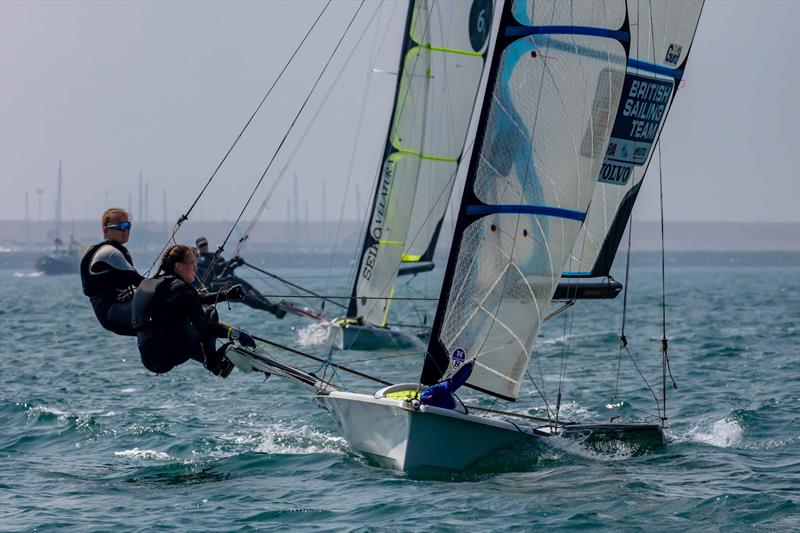 The combination of variable wind speed and Direction plus the traffic never let any one get away with notable performances coming from Finn Morris and Ben Bradley in a 20 year old sliding wing boat, they sadly had to miss out on most of Sunday's races with a broken cap shroud. Ironically possibly one of the newest parts on their boat! Carrie Clark and Sophie Raven mixed it up at the front in every race, whilst Leo Wilkinson and Fliss Brellisford got better with each race. Lia Fletcher and Izzy Smith were never far behind, always pushing the top three.