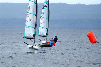 Racing was on a triangular course with a reaching start. All 16 races were completed in a full range of wind conditions. Most races involved foiling in the gusts as well as some displacement sailing. These winged dinghies are highly versatile, being faster in displacement mode than conventional junior dinghies, so they don't have to wait for wind to go racing.