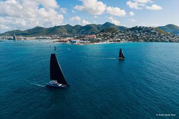 Morning light in Anse Marcel looked like a Gauguin painting. A mix of pale green, intense blue and shades of grey after a short shower gifted us with a magic rainbow. Based on the time trial calculation, each multihull would be given a departure time, so that the Committee could expect all yachts to arrive - more or less - at the same time in St Barth later on Saturday.