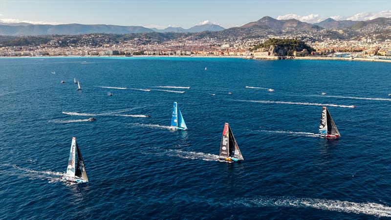 The fleet set off from the Promenade des Anglais, offering spectators a stunning view as the seven competing IMOCA teams tacked upwind toward the Monaco scoring gate. Shortly before the start, big wave world record holder Sebastian Steudtner leapt off the portside outrigger of Malizia - Seaexplorer, performing a backflip into the Mediterranean in front of spectator boats and the crew. The German famously surfed the world's biggest wave, about the height of an IMOCA mast, making his jump a perfect send-off for Team Malizia as they began Leg 4.