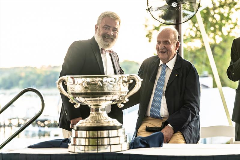 Three-time Classic Six Metre World Champion and reigning Classic World and European Champion, His Majesty's commitment to the class is exceptional and has seen him play a key role in revitalising the Six Metre fleet in Spain. His surprise announcement to the gathered fleet was the presentation of a spectacular new perpetual trophy, the Copa Rey Juan Carlos, which will be presented to the winner of the Classic Six Metre World Championship, alongside the historic Djinn Trophy.