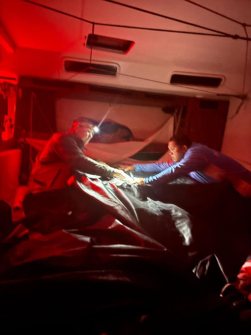 "A nice fast and dark night last night in 15 to 22 knots, with boat speeds between 20-25 knots at 125 True Wind Angle. It's a little damp on deck at times and we had a small issue with one of our mainsail batten boxes which took around 30 minutes to fix.," Jono Rankine said from Lucky.