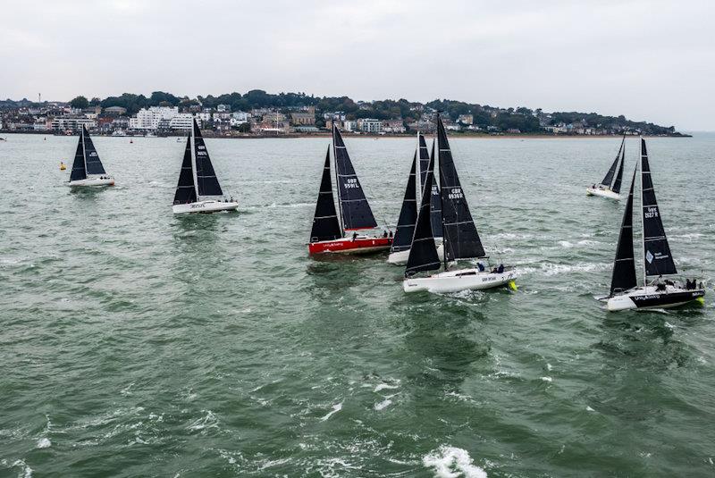 This past weekend saw the first round of the Solent Super Series, now in its third year. The four round, max four crew format, will visit Yarmouth and Lymington before finishing with the final round in Gosport in late November. Nine of the Eleven entered teams got the series under way after a short 'AP' for a large container ship passing through the Solent, Race one was a 13nm round the cans course utilising the boats sail inventories in the light ENE wind.