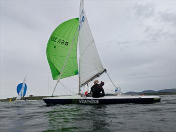 'An eager fleet set off at 9 o'clock for the first race on Sunday in 10-14 knots and finished just in time ahead of the no wind, rain, thunder and bitter cold. Rob waited an hour and was rewarded with 8-10 knots of solid switchy, sailable wind for the last two races with the wind fading to finish the regatta with a shortened course.'