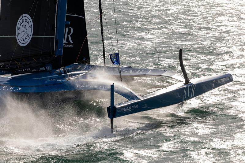 In an unfamiliar 18th place are Yoann Richomme and Corentin Horeau on Paprec Arkéa, who hit a navigation buoy at the start and had to return to Le Havre to repair damage to the outrigger deck spreader and starboard foil. The shore team worked through the night, bringing replacements from their Lorient base, and the duo returned to racing early on Monday afternoon, but they have over 300 nautical miles to catch up on the leaders.