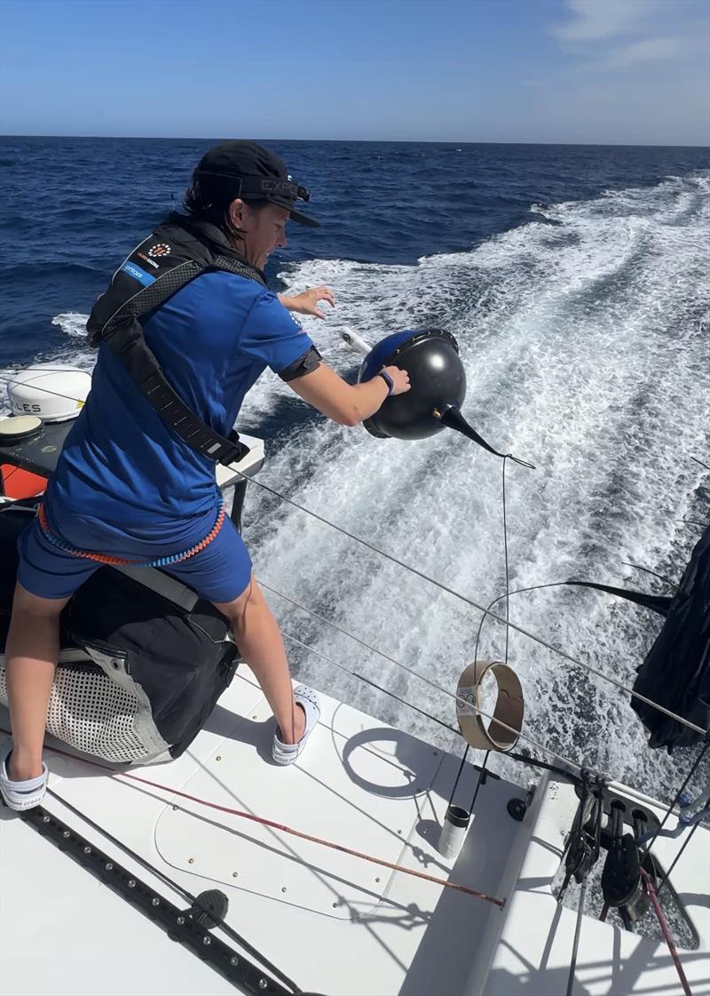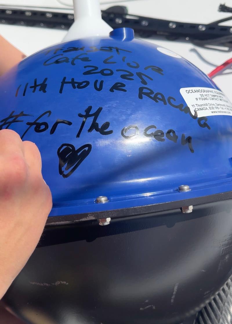 On Sunday the duo, while lying in second place after seven days of racing their 60-foot foiling IMOCA raceboat 11th Hour Racing, deployed a Météo France Surface Velocity Program (SVP) drifting weather buoy at 22 36o N 19 00o W between the Canary Islands and Cape Verde.