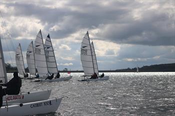 Again, everyone started on starboard tack but a few tacked early onto Port having found slightly stronger winds on the east side of the lake on the previous race.