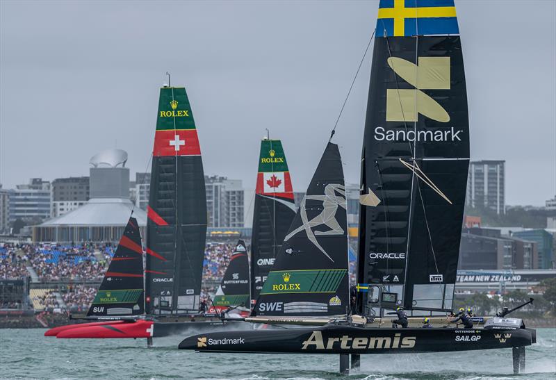 Artemis SailGP Team lead Switzerland and Canada - Race Day 1 of the ITM NZ Sail Grand Prix - February 14, 2026 © Felix Diemer/SailGP