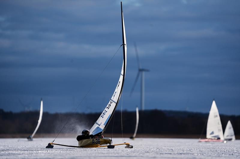 Although the ice thickness was sufficient and snow-free - ideal for DN speeds - the Race Committee identified numerous deep cracks that posed serious risks. After long discussions, the C fleet qualification was conducted. However, during the race Latvian pilot Madars Alvikis (O-31) broke his rudder after hitting a crack. The incident clearly demonstrated that racing could not continue safely at that venue.