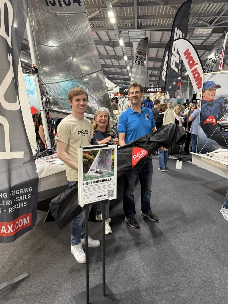 Derian and Andy were snapped at the Dinghy and Watersports Show receiving their jib from P&B's Rhys Rollitt. Rhys commented: "The Fireball is in P&B's DNA, and we're thrilled to continue our support of the Class at the Worlds in July. We hope this sail gives Derian and Andy that little bit of extra edge to climb the results table. Aiding class development — whether that's through sail design or boat fit-out — is something we're genuinely proud to be part of".