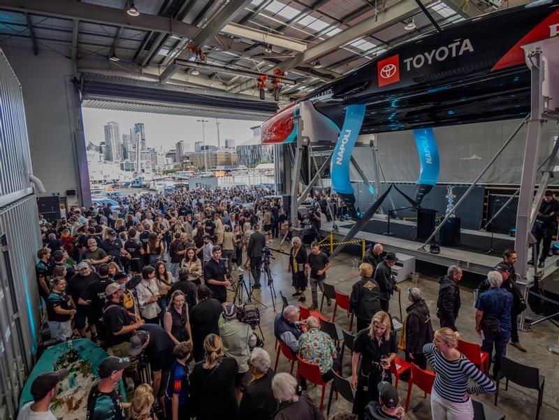 Emirates Team New Zealand officially relaunched their AC75, Taihoro in front of friends, families, sponsors, and long-time supporters, gathered at the Wynyard Point base in Auckland.