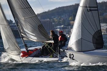 The fleet raced in a southerly 10-12 knot breeze which flicked about a bit and occasionally reached 15 to 18 knots, and along with the outgoing tide, kept the sailors on their toes on the River Derwent.