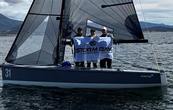 Sailing with the 2025 Tasmanian Sailor of the Year, David Chapman and fleet newcomer, Harry West, Cooper looked comfortable on his home waters, winning two of today's four races to finish the day on nine points, two points ahead of defending champion Porco Rosso (Paul McCartney).