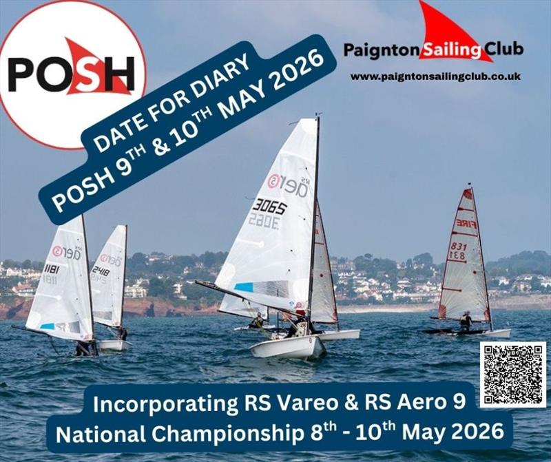 Paignton Sailing Club is pleased to announce that entries are now open for the prestigious POSH (Paignton Open for Single Handed Dinghies) event, scheduled to take place on 9th and 10th May 2026.