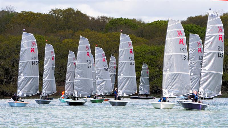 Saturday saw wall to wall sunshine and a light breeze out of the west which over the course of the day swung as the sea breeze kicked in. This resulted in what could kindly be called a "shifty day with holes" but lead to some very tight racing across the fleet. Local helm and class newcomer Tim Blackmore used his local knowledge and boat speed to win two of the three races but he was chased hard by Tim Garvin who also took a win and by Steph Orton in her fathers H2 who was fast all day due to a mix of skill, local knowledge and lighter weight than the average H2 sailor to great advantage.