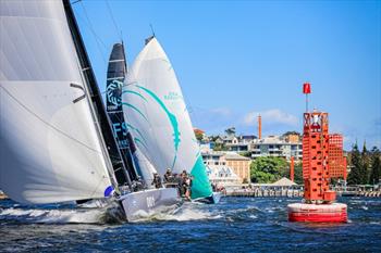 Newcastle Harbour has hosted sailing regattas for over 175 years, but never has it witnessed a sight more exciting or nail-biting than this - eight grand-prix TP52s planing across the line under spinnaker, fanned by 25 knots of wild, wild sou-westerly.